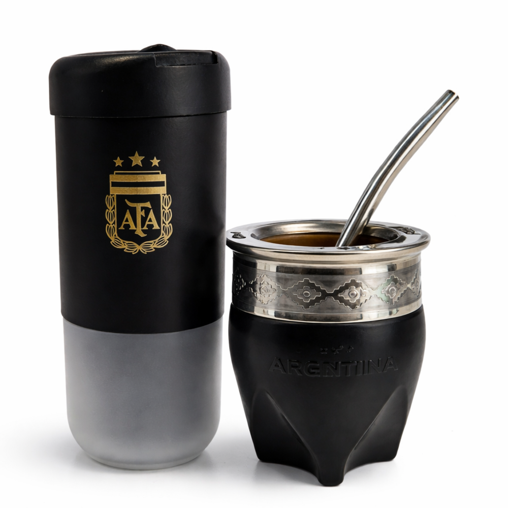 "Incluye mate imperial + yerbera despolvillador + bombilla XL Con packaging Diseño grabado de AFA