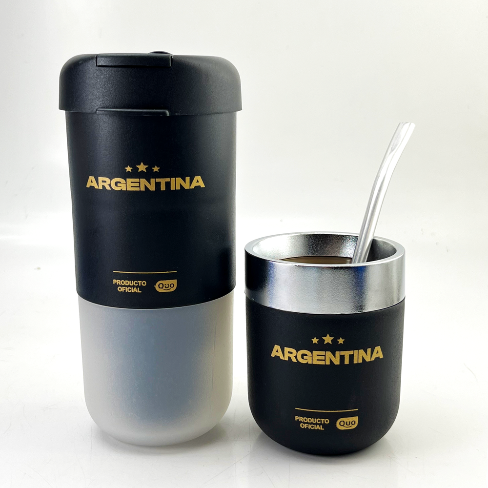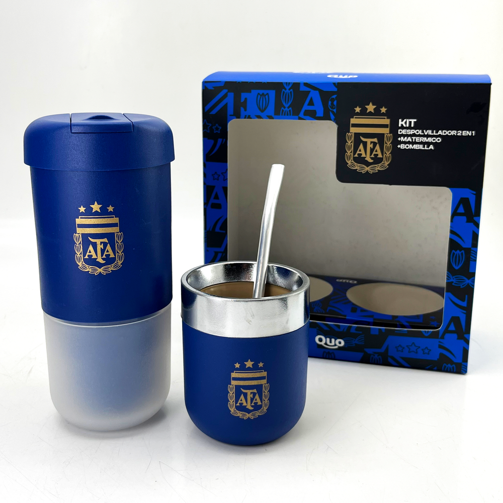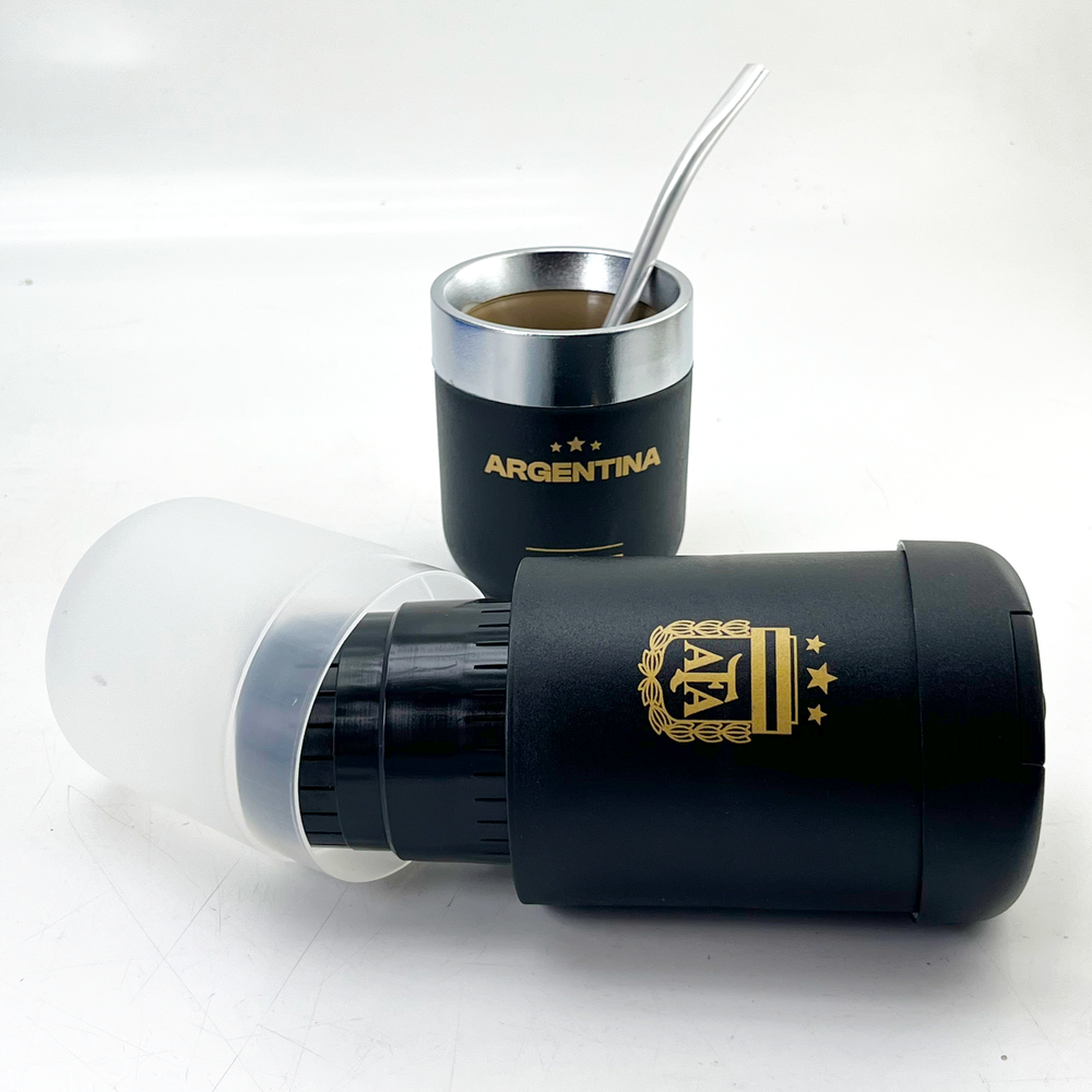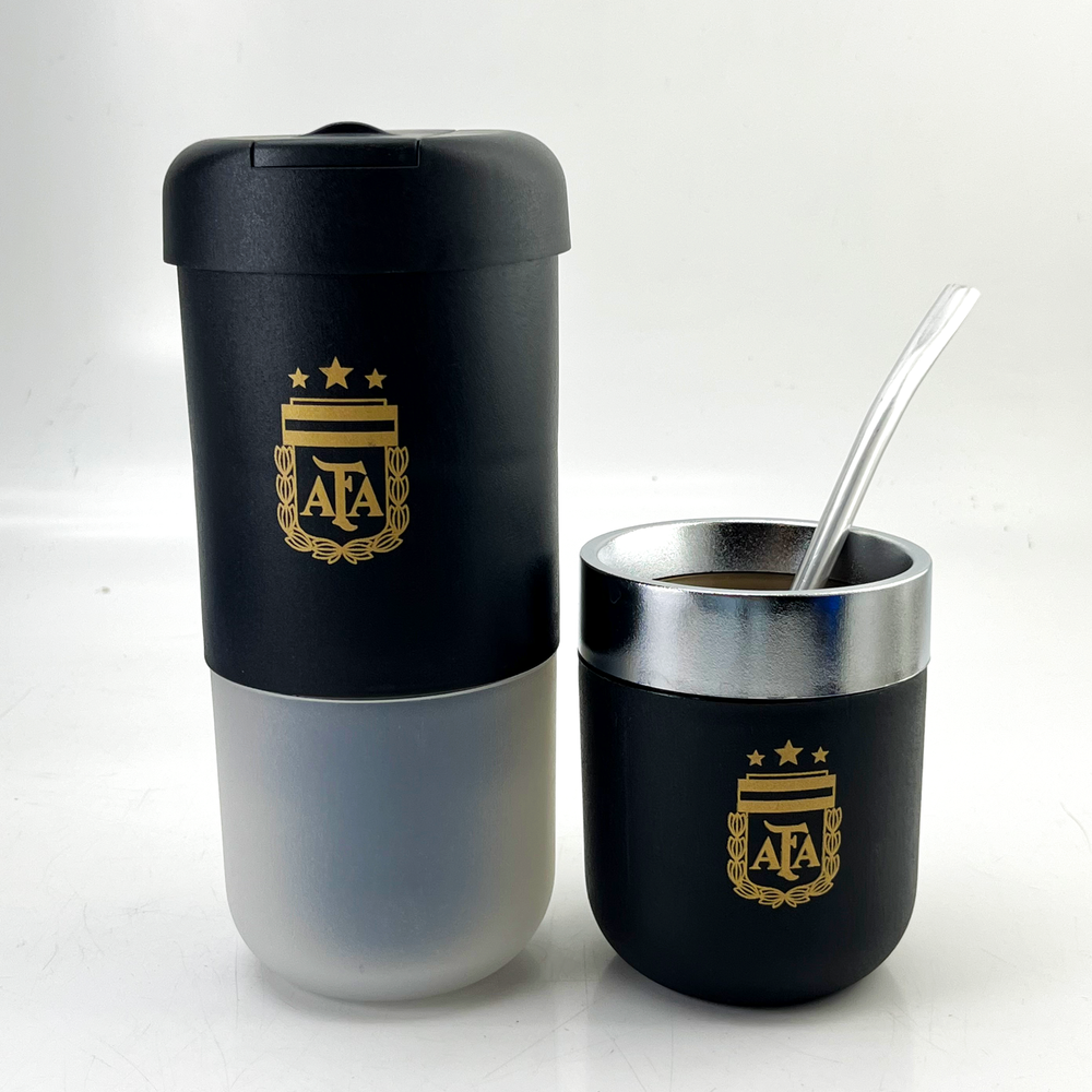 Set que incluye despolvillador yerbera, matérmico cromado y bombilla Mate térmico con doble pared Yerbera con filtro despolvillador con 120gr de capacidad