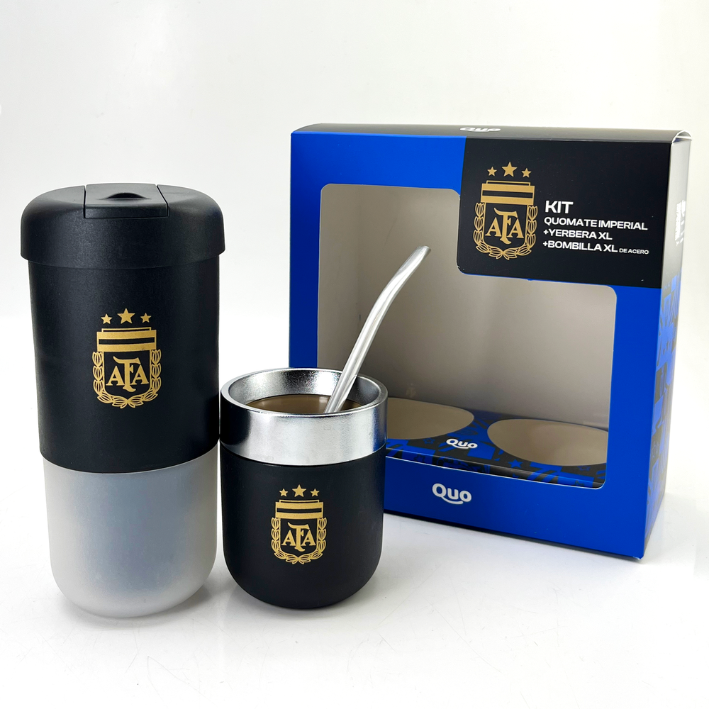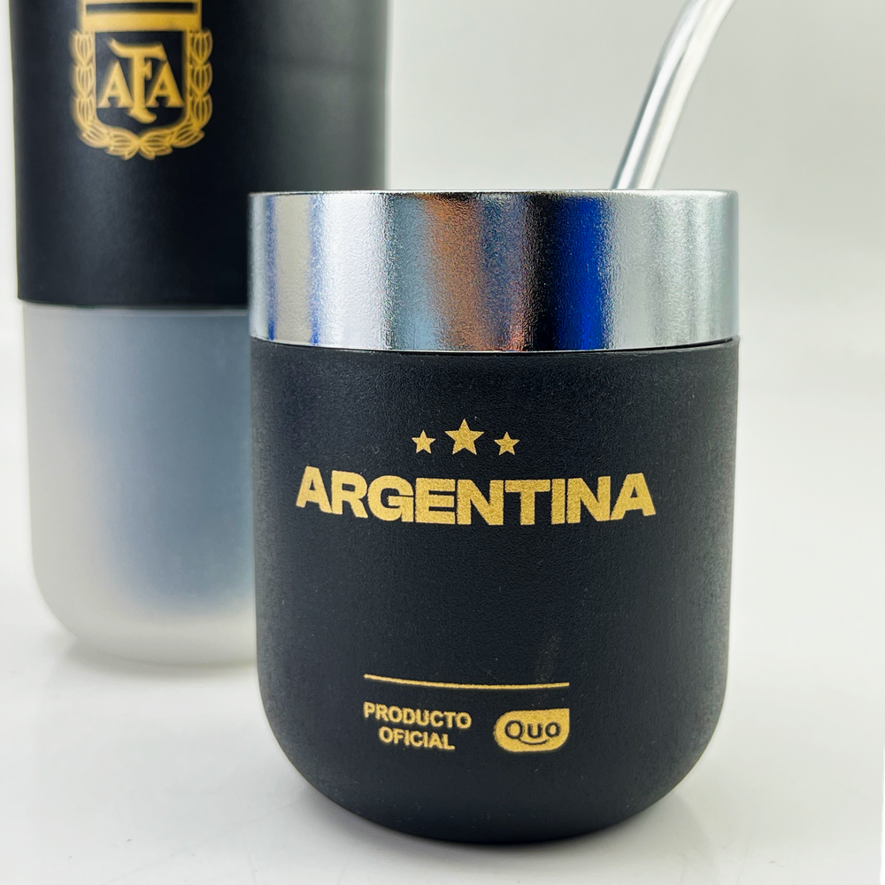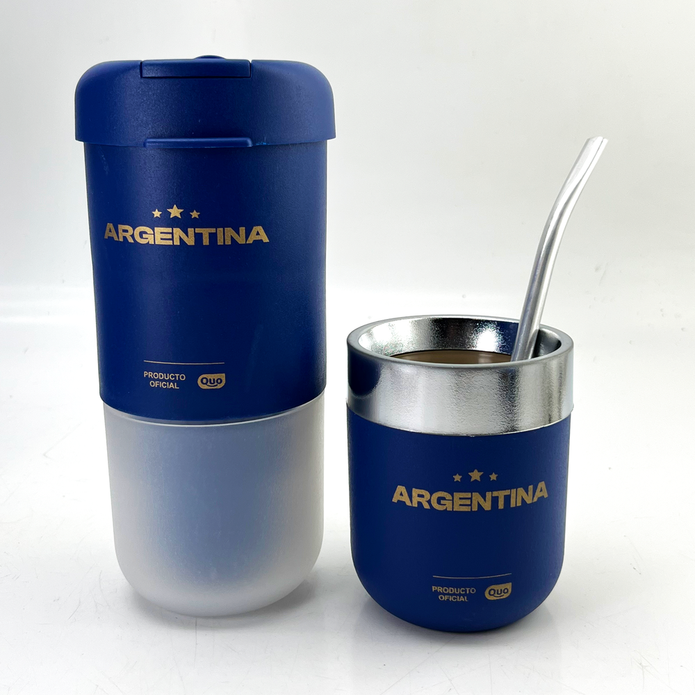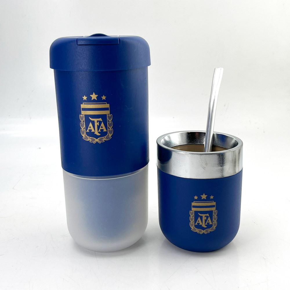 Set que incluye despolvillador yerbera, matérmico cromado y bombilla Mate térmico con doble pared Yerbera con filtro despolvillador con 120gr de capacidad