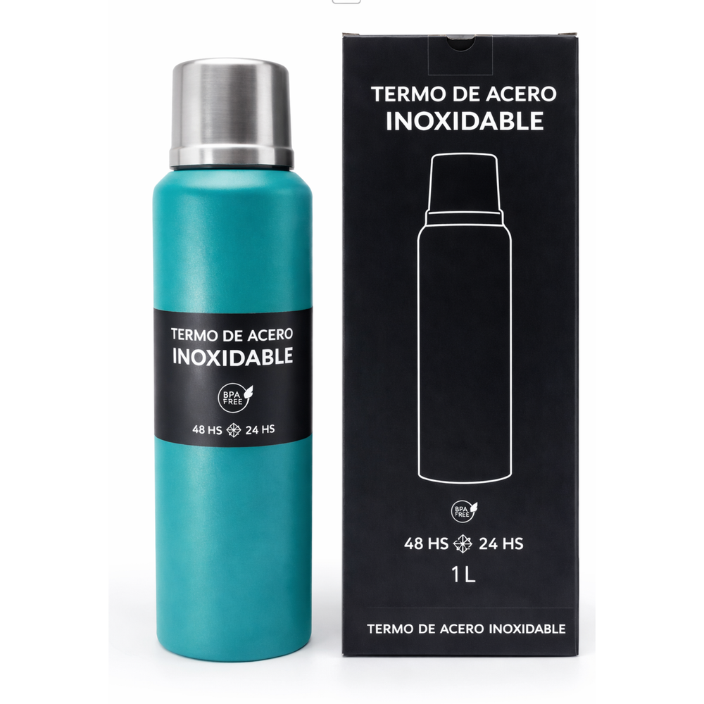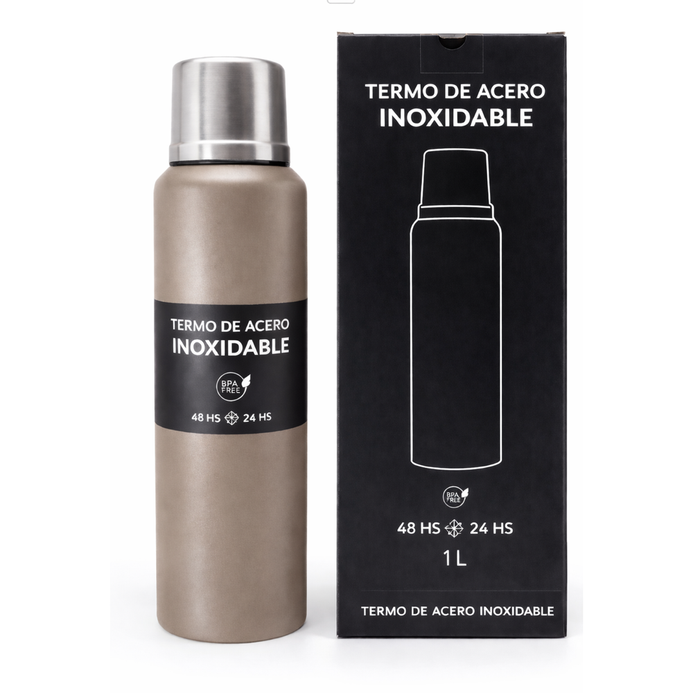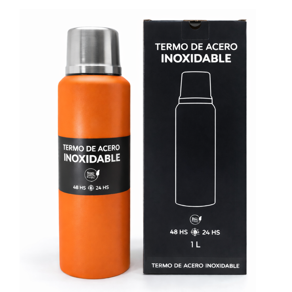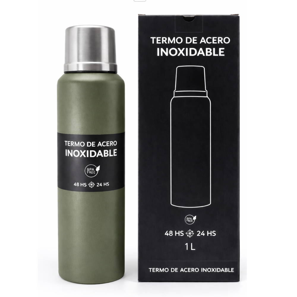Termo de calidad premium apto frío y calor Doble pared de acero inoxidable 304 Certificado INAL Con tapa hermética y base antideslizante